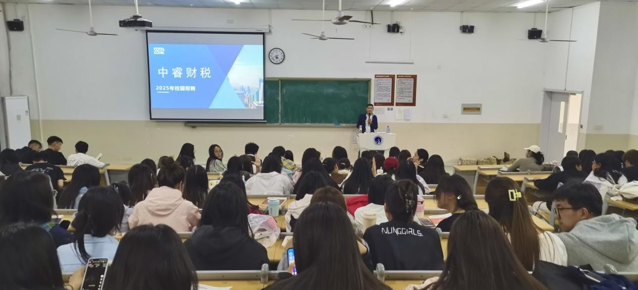 中睿财税负责人在宣讲中尽显企业魅力,全方位展示企业雄厚实力与光明前景。作为深耕财税领域多年的行业翘楚,中睿财税业务广泛覆盖税务筹划、财务审计、金融咨询等多元板块,声誉斐然。负责人着重介绍了企业完善的人才培养体系、通畅的晋升渠道和诱人的薪酬福利,围绕会计、金融等专业,细致解读会计助理、审计专员、金融分析师等岗位任职要求与发展潜力,瞬间点燃学生们的浓厚兴趣。