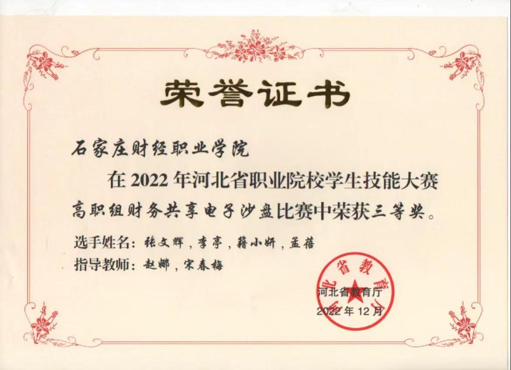 2022年河北省职业院校学生技能大赛高职组财务共享电子沙盘三等奖