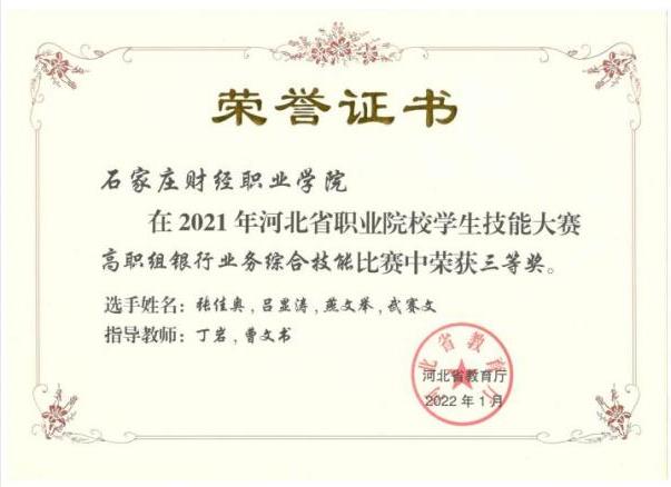 2021年河北省职业院校学生技能大赛高职组银行业务综合技能三等奖