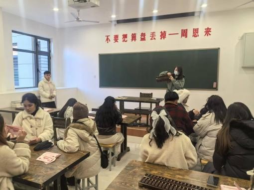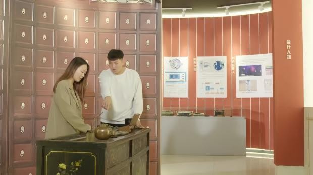 ▲学生在会计文化展室感受会计文化
