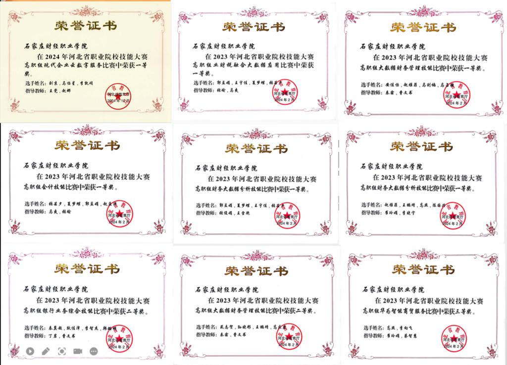 学院现为财务共享服务、业财一体信息化应用、财务数字化应用、数字化管理会计、智能财税等职业技能证书试点单位,在教学中高度重视学生职业素质与技能的培养。近五年来,荣获职业技能大赛国奖4项,省级奖项60余项,其中一等奖9项、二等奖19项、三等奖31项。