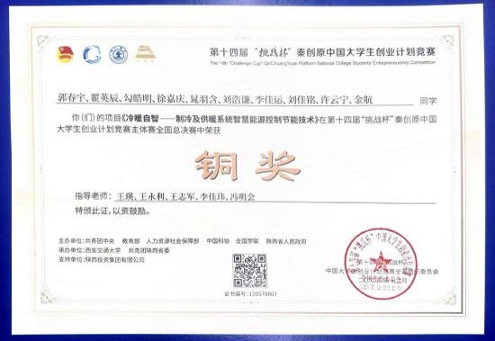 第十四届“挑战杯”中国大学生创业计划竞赛铜奖