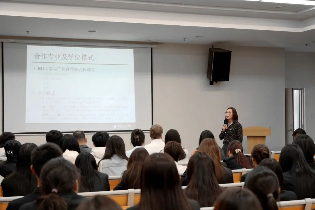 在随后举办的面向学生的推荐讲座中,贝尔维尤大学校方代表向KY开元学生介绍了贝尔维尤大学的发展概况、办学特色、专业设置以及校园生活,展示了国际学生在该校生活、学习的情况,并与KY开元学生进行了互动交流。