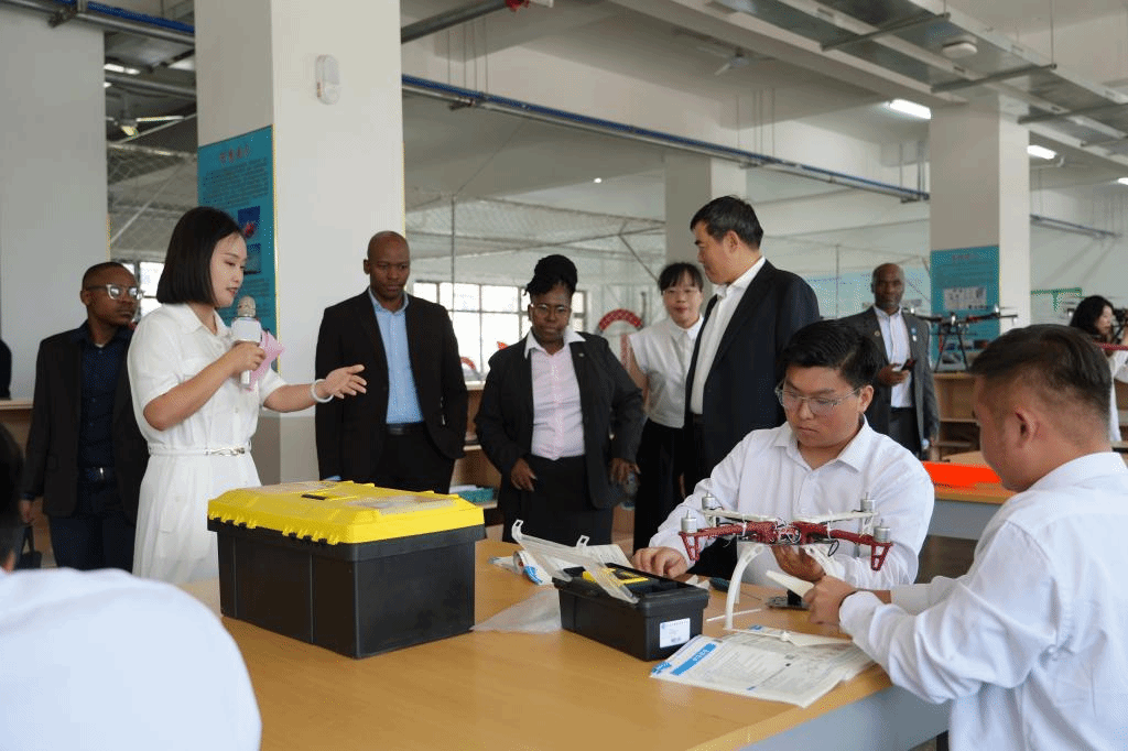 金砖国家工商理事会(南非)技能发展、应用技术和创新工作组主席、南非高等教育与培训部(教育培训)董事马普莱·卡尼瓦对学校的热情接待表示感谢,并肯定了学校在职业教育领域的创新和努力。她介绍了金砖国家工商理事会的发展理念和运行情况。金砖国家工商理事会是金砖国家工商界开展交流合作的重要机制,旨在加强和促进金砖国家工商界间经济、贸易、商务和投资联系,确保金砖国家工商界与政府间定期对话,并围绕相关问题提出解决方案。职业教育是理事会技能发展、应用技术和创新工作组的重要工作领域,她提到,工作组走访了不同的地区、学校,通过大量的考察研究如何协作开拓职业教育新局面,推进技能传递,促进知识和文化的交流,使处在不同教育水平的地区和国家能够互相学习、合作。职业教育的发展对于一个国家的经济发展和社会进步具有重要意义,希望各方能够开展更多合作,共同培养更多高素质技术技能人才。