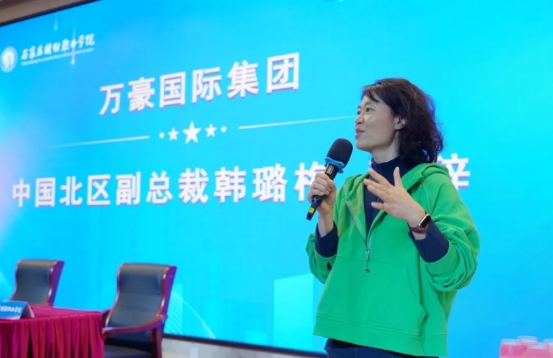 万豪国际集团中国北区副总裁韩璐梅女士致辞,她表示学校一直秉承“修德励志、强能善技”的校训,始终坚持内涵建设,特别在育人方面,坚持“以人为本、注重质量、突出特色、服务社会”的办学理念,与万豪国际集团“以人为本、拥抱变革、服务全球”的核心价值,以及关于年轻一代人才培养的构想不谋而合,她期待能以此次签约揭牌仪式为契机,加强校企双方紧密协作,共同培养出在未来行业持续变革与万豪国际集团深耕发展过程中,足以承担更多重任,也收获自身更多职业机遇的复合型专业人才。
