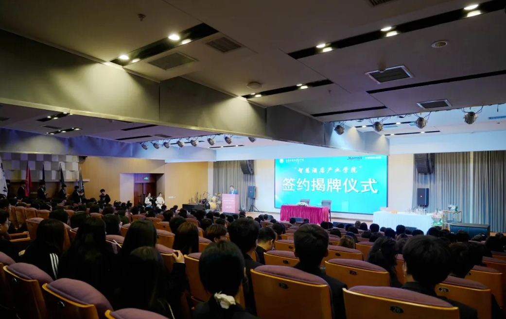 签约揭牌仪式上,播放了学校及万豪国际集团的宣传片,分别展示了万豪国际集团在全球酒店行业的卓越成就和学校在教育领域的不懈追求;同时,让我们看到了万豪国际集团的专业与创新,感受到了学校的活力与进取。