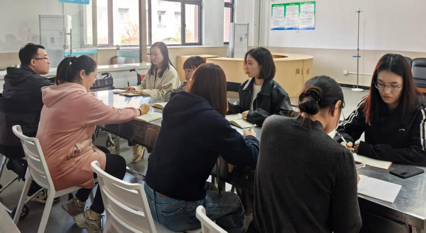 康养教研室教师进一步研讨,梳理课程知识点与实践环节,形成深化思路与明确路径,部分教师提议在《失能失智健康照护》实训课中增设情感沟通模拟环节;同时创新评价方式,增设“思政素养评分项”,评审学生综合表现。