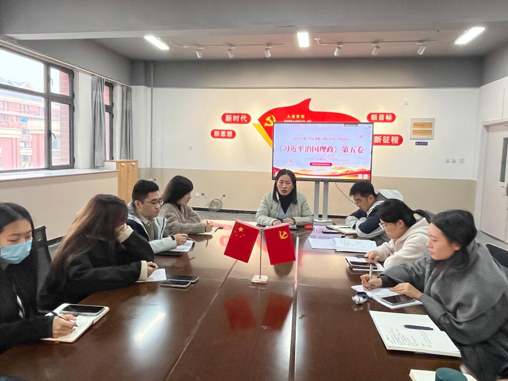 党总支书记郝艳在要求全体党员干部要提高政治站位,将学习《习近平谈治国理政》第五卷作为当前和今后一个时期的重大政治任务,坚持读原著、学原文、悟原理,做到学思用贯通、知信行统一。要深刻领悟“两个确立”的决定性意义,增强“四个意识”、坚定“四个自信”、做到“两个维护”,切实把学习成果转化为推动学院各项事业高质量发展的强大动力和实际成效。与会人员认真聆听,仔细记录,现场学习氛围浓厚。