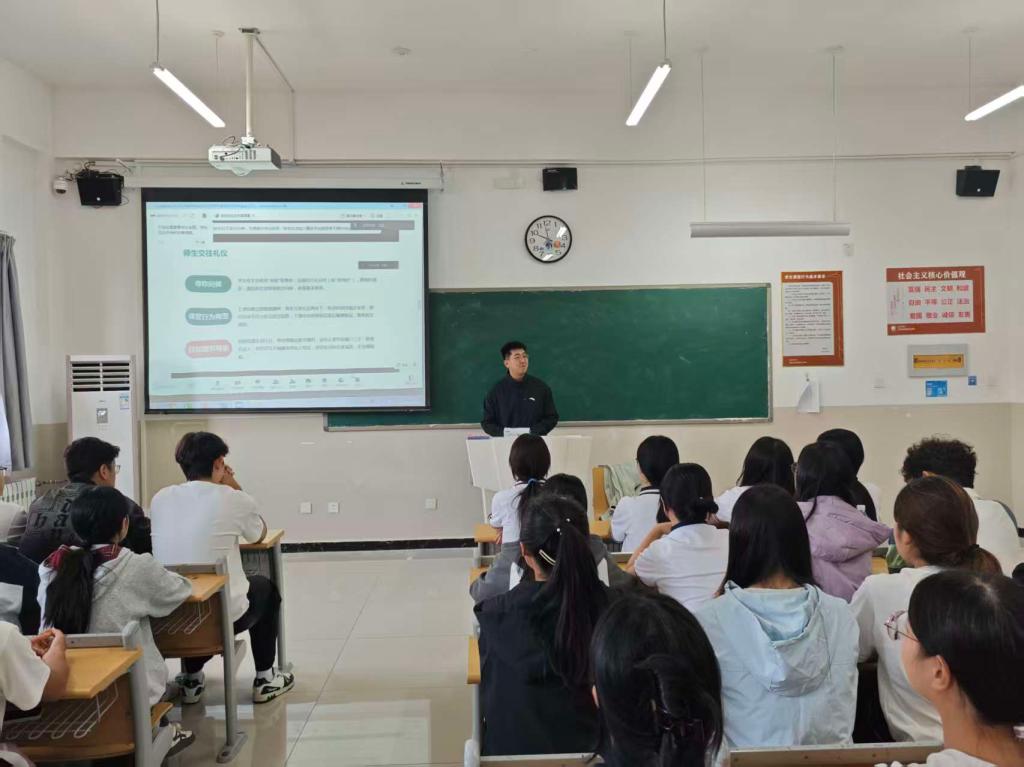 班会开场,辅导员以“大学与文明”为核心,通过播放校园文明主题短片、展示校园生活实拍图等方式,直观呈现大学校园的学习、住宿、活动场景,引出“文明不仅是个人修养的体现,更是校园秩序的基石”这一核心观点。“课堂上随意进出、宿舍里深夜喧哗、食堂中浪费粮食,这些看似微小的行为,都会影响他人的校园生活。”辅导员在讲解中结合往届学生的真实案例,从“课堂礼仪”“宿舍文明”“公共秩序”“网络言行”四个维度,细致拆解大学生应遵守的文明规范----课堂上需提前入座、手机调至静音,尊重老师与同学的学习时间;宿舍内要主动分担卫生、包容室友差异,共建温馨集体;图书馆、食堂等公共场所需遵守排队秩序、保持环境整洁,践行“文明共享”理念;网络交流中要理性发言、拒绝谣言,做负责任的“网民”。