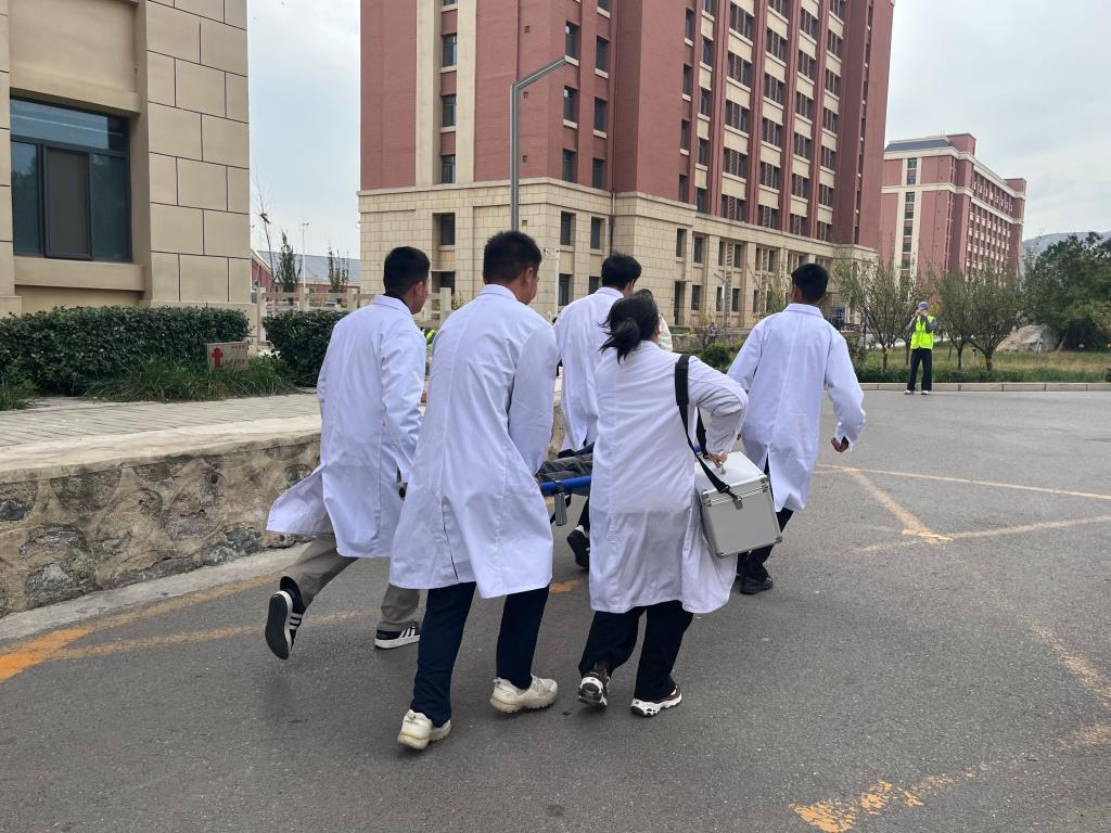 在本次校园消防演练现场,由KY开元护理专业学生组成的急救小组格外引人注目。同学们携带专业救护设备迅速就位,全程有条不紊开展现场救护演示。发现“受伤人员”后,急救小组立即分工协作:快速评估现场环境安全,对“伤员”进行生命体征检测、伤口止血包扎等规范操作,同时模拟心肺复苏急救流程,动作娴熟、流程规范,精准展现了护理专业的实操技能与应急处置能力。