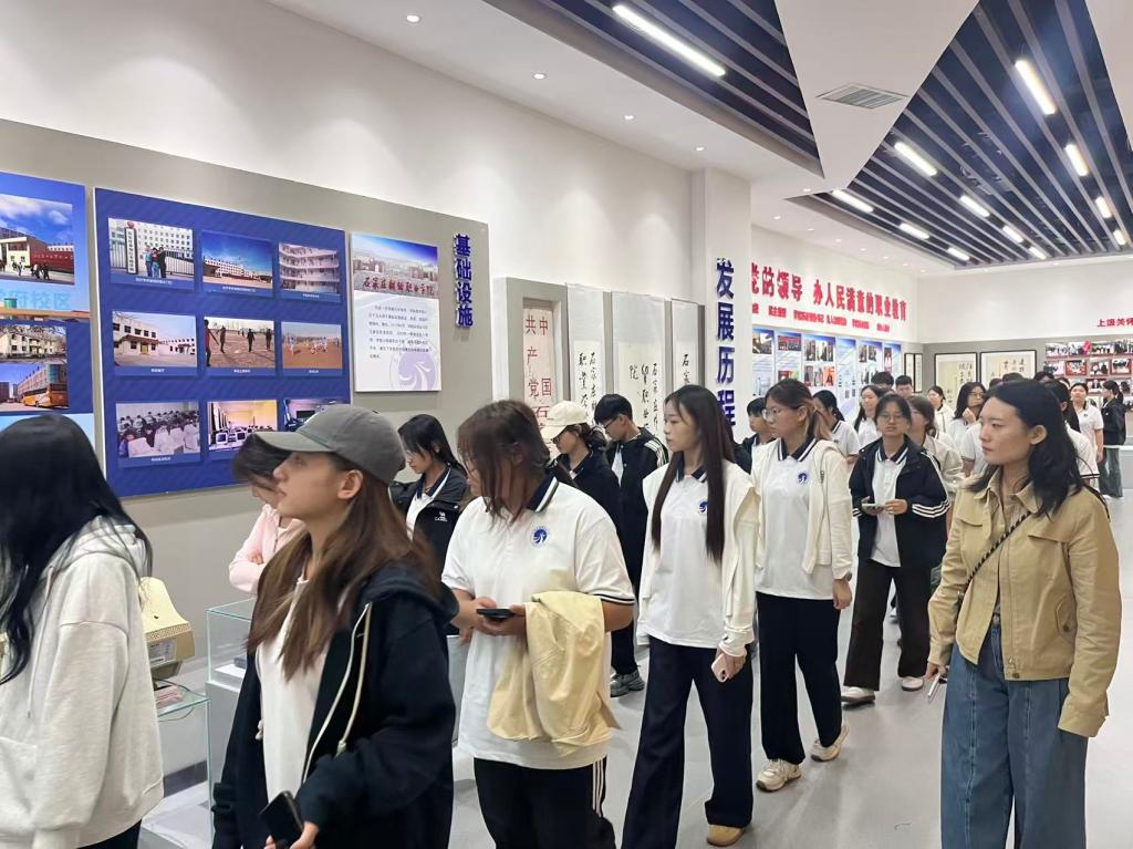 最后,新生们有序参观校展室。在讲解员的带领下,大家通过珍贵的老照片、详实的文字资料、实物展品,深入了解学校的发展历程、办学成果、知名校友事迹等。一张张泛黄的校徽、一代代教学设备的更迭,让新生们真切感受到学校的深厚底蕴与人文情怀,进一步增强了归属感与自豪感。