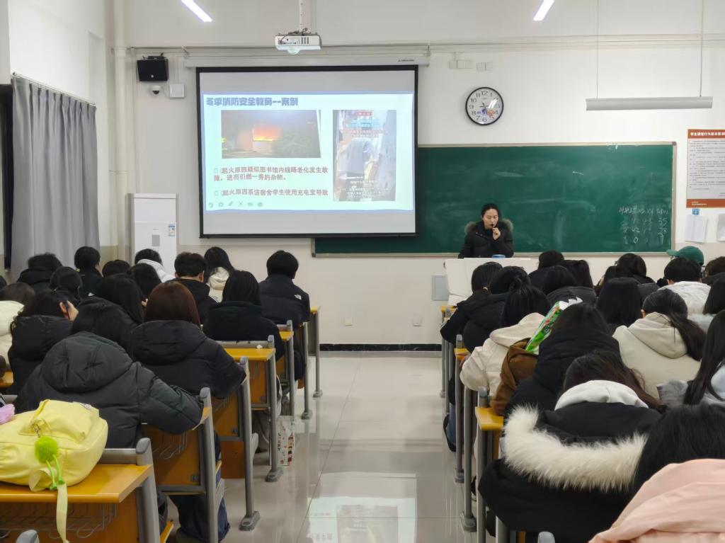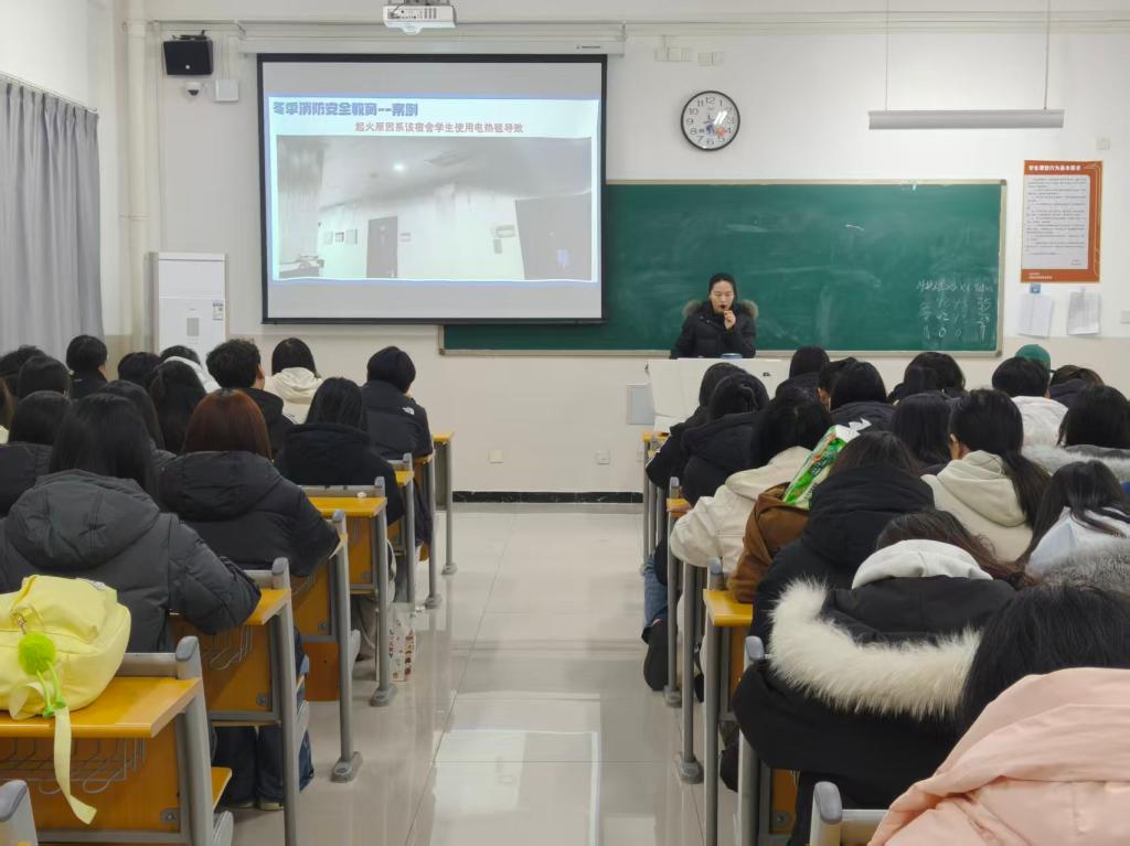 班会现场氛围庄重而热烈。各班辅导员结合冬季天干物燥、用火用电需求增加的季节特点,通过PPT图文展示、典型火灾案例视频播放等形式,系统讲解了火灾成因、报警流程、初期火灾扑救方法等核心知识。针对宿舍这一重点区域,辅导员着重强调禁用“热得快”“暖手宝”等大功率违规电器的要求,结合校园内曾发生的用电安全隐患案例,深入剖析违规用电的严重后果,让学生深刻认识到“小隐患”可能引发的“大危险”。部分班级还邀请学生分享身边的安全小故事,以鲜活视角强化警示效果。