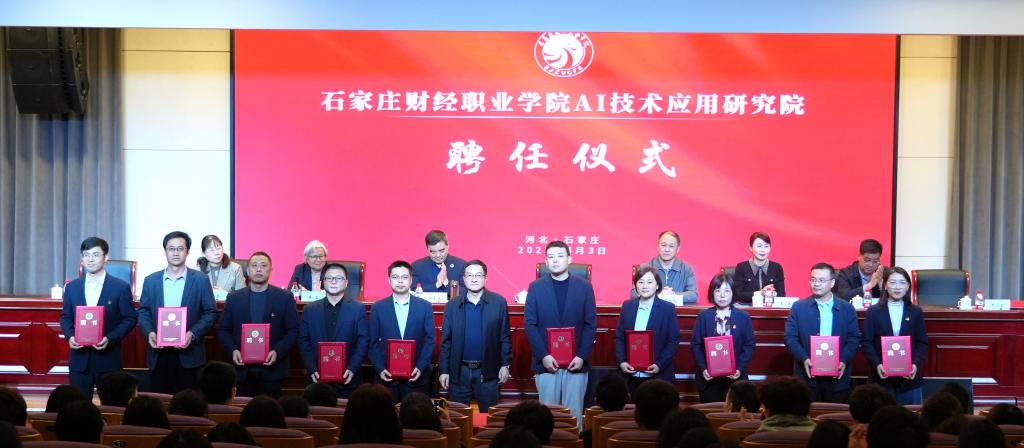 校长赵建华与党委书记薛向东共同为“KY开元集团官网入口AI技术应用研究院”揭牌,并为各位老师颁发聘任证书。