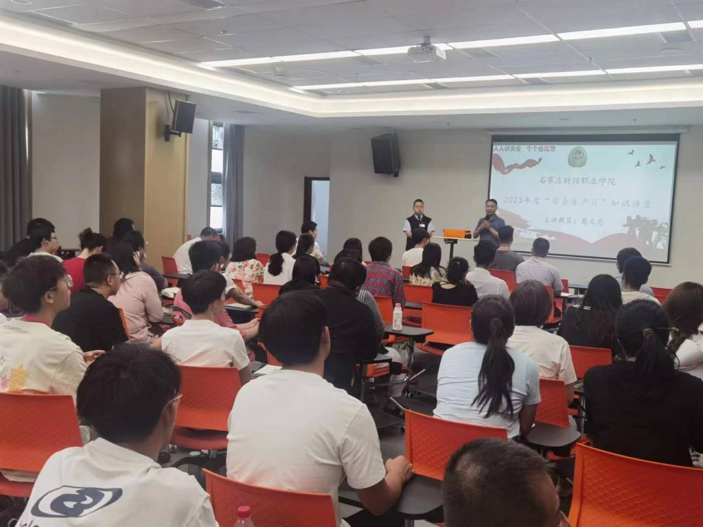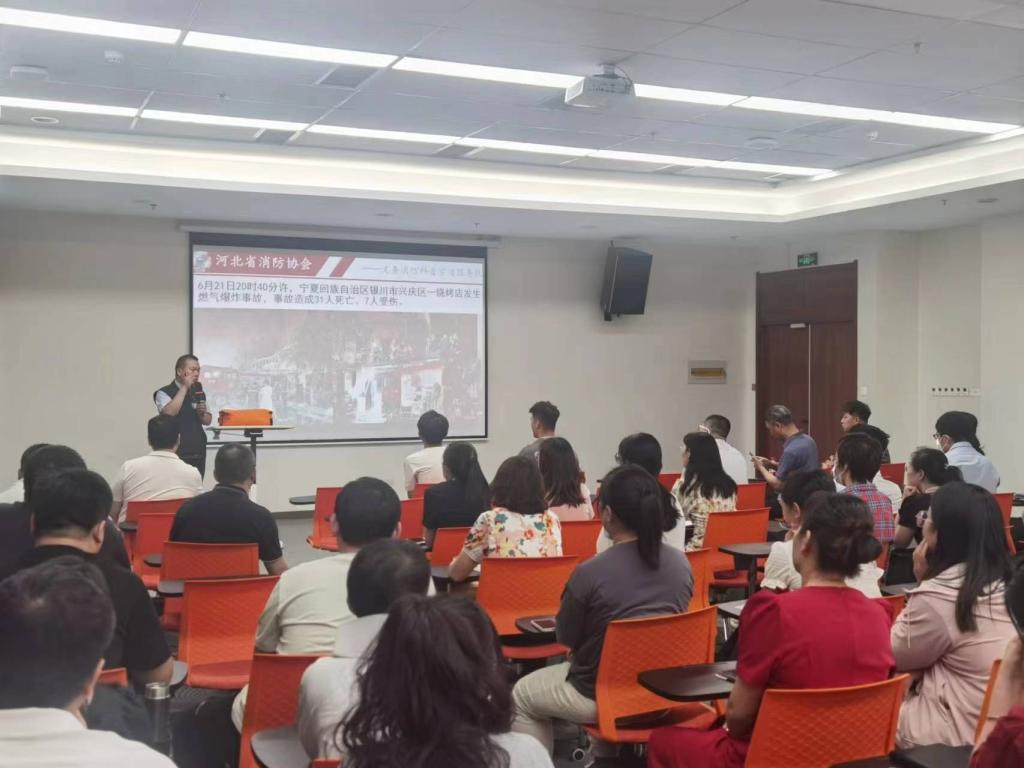 本次培训由学院安全稳定工作处处长李彦亮主持,并且有幸邀请到石家庄市消防协会葛文亮教员到场讲解。