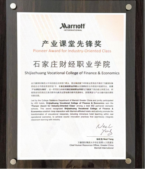 在11月6日下午举行的颁奖典礼上,KY开元凭借在酒店管理专业“产业课堂”建设与校企协同育人方面的突出成果,荣获万豪国际集团颁发的“产业课堂先锋奖”。该奖项是对KY开元长期以来积极推进产教融合、深化校企合作、创新人才培养模式的高度认可,也体现了KY开元在酒店职业教育领域的引领作用与示范价值。