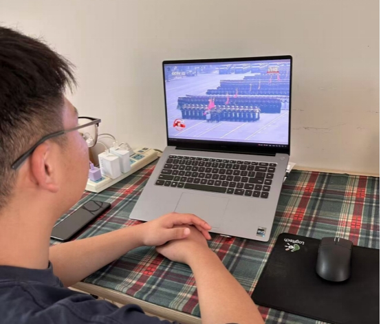 观看过程中,全体人员全神贯注,深刻感受到受阅部队整齐划一的步伐、现代化武器装备的磅礴气势。当承载着抗战光荣历史的英雄部队旗帜迎风飘扬,同志们仿佛回到了那段艰苦卓绝的烽火岁月,更加深刻地认识到当前和平环境的来之不易。