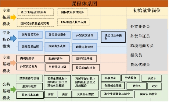 专业教师会同行业企业专家,根据专业定位与培养目标,针对工作岗位需要,构建了契合专业培养目标的国际经济与贸易专业课程体系。