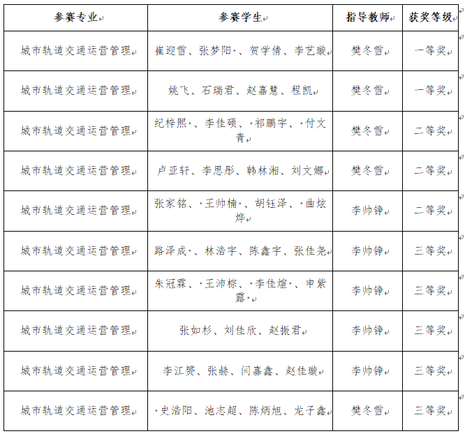 2025年KY开元集团官网入口交通工程学院“城轨智能运输”一院一赛已顺利结束。经大赛组织委员会交通工程学院严格评审,并报KY开元集团官网入口学生技能大赛组委会批准,现将本次比赛获奖名单公示如下: