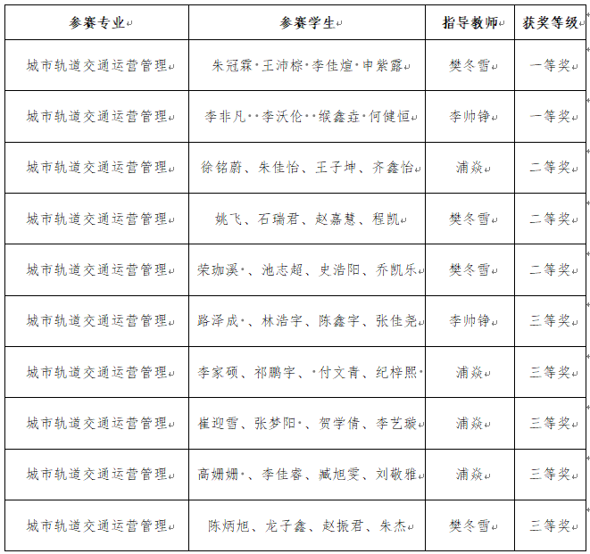“高铁信号与客运组织”一院一赛获奖名单