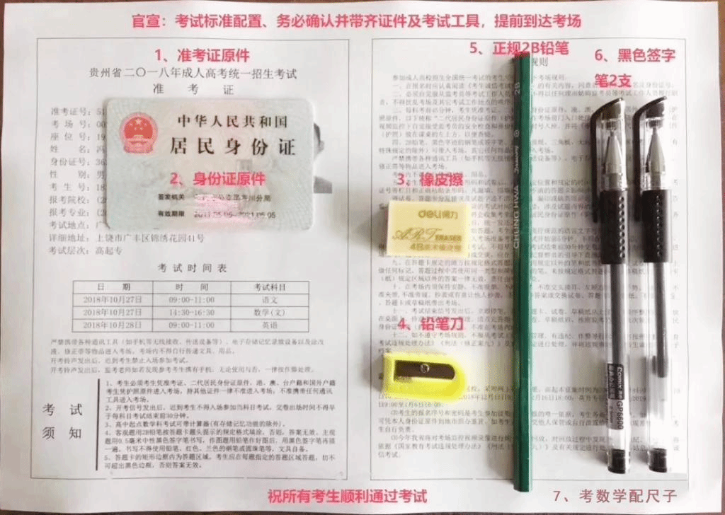 1、考试必备工具有:2B铅笔、削铅笔的小刀、中性黑色签字笔、橡皮、圆规、尺子、身份证原件、准考证。