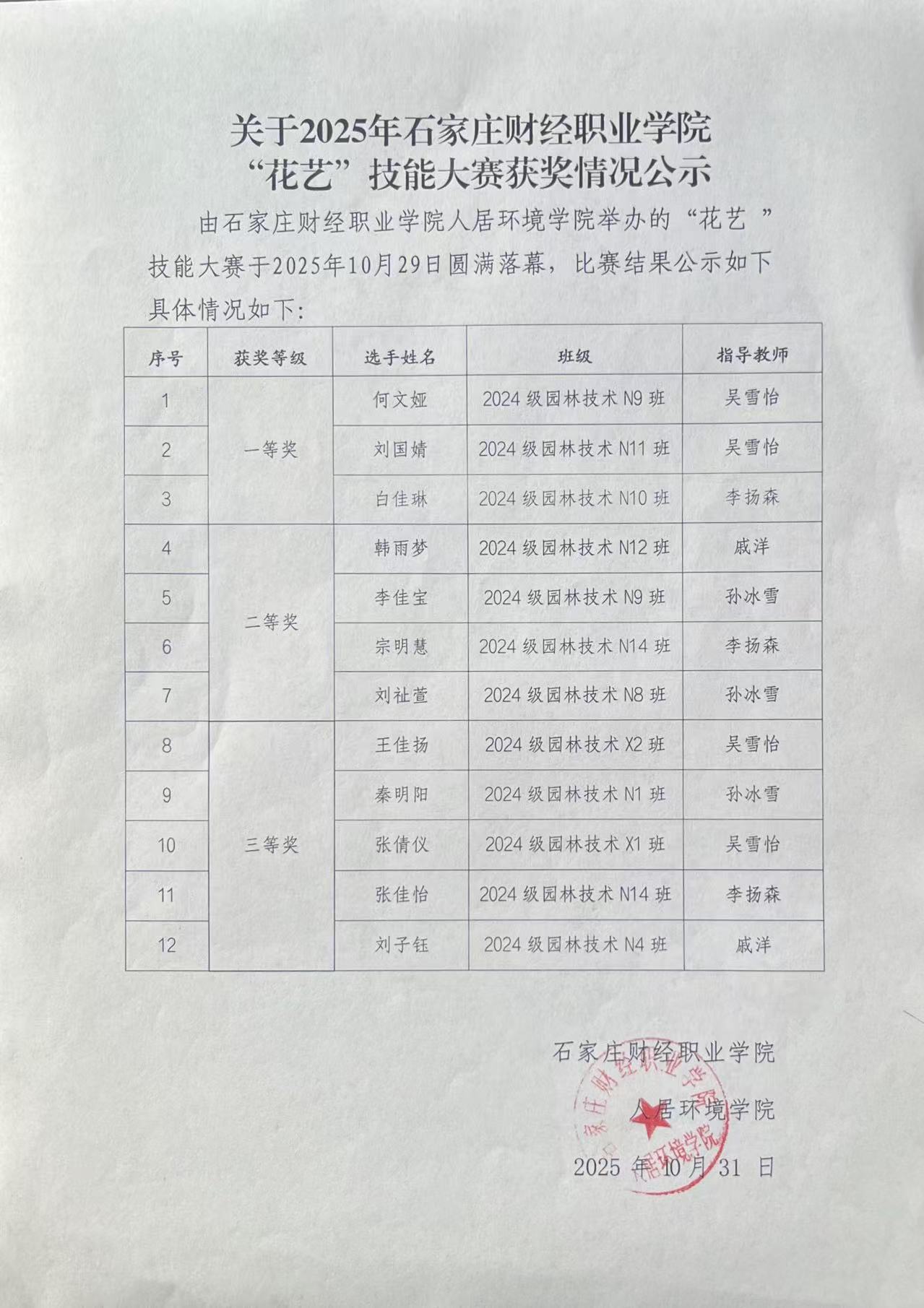 关于2025年KY开元集团官网入口“花艺”技能大赛获奖情况公示