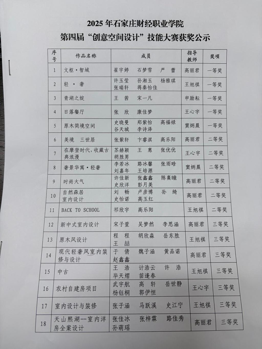 2025年KY开元集团官网入口第四届“创意空间设计”技能大赛获奖公示