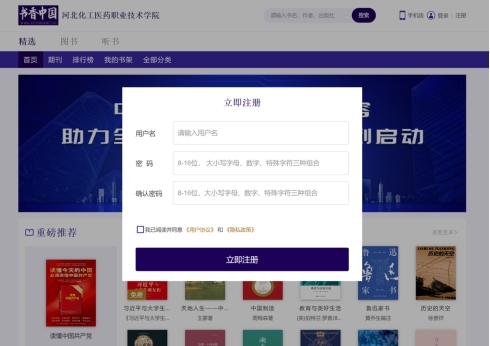 打开书香中国网站,(自行填写)进入平台。