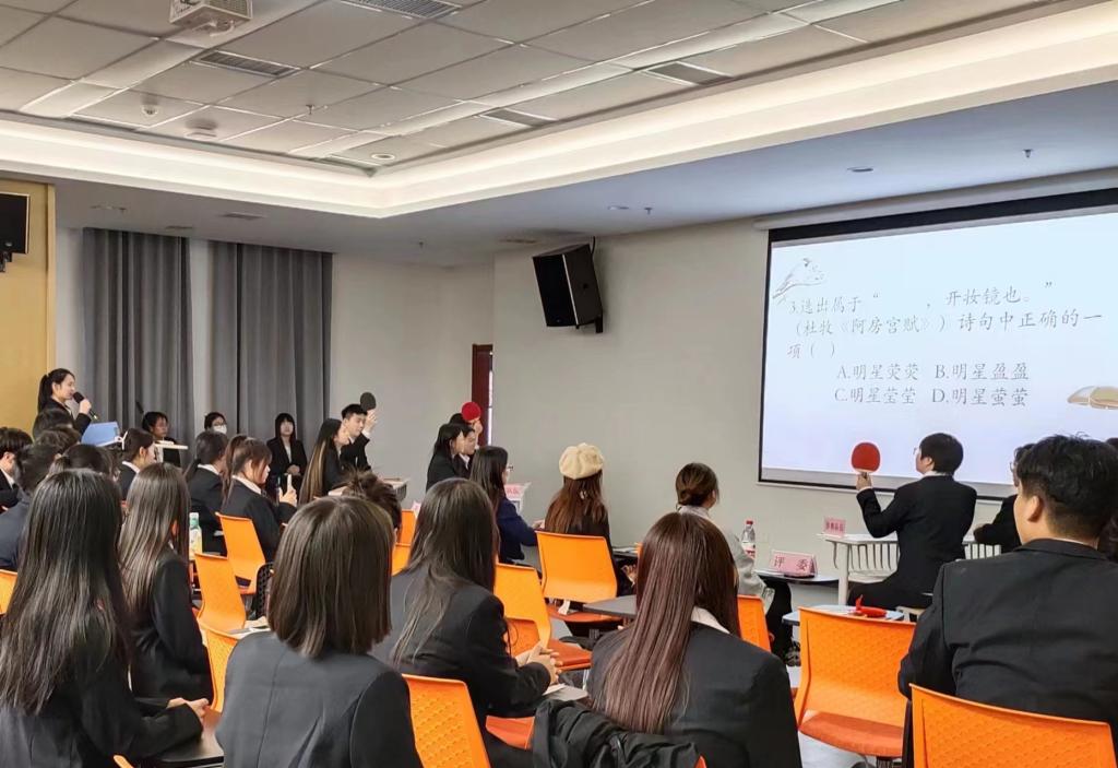 每个环节中,同学们沉稳思索、团结合作,展现了青年学子们的精神面貌,激发了同学们对诗词文化兴趣的同时,也传承了中华民族优秀的传统文化。