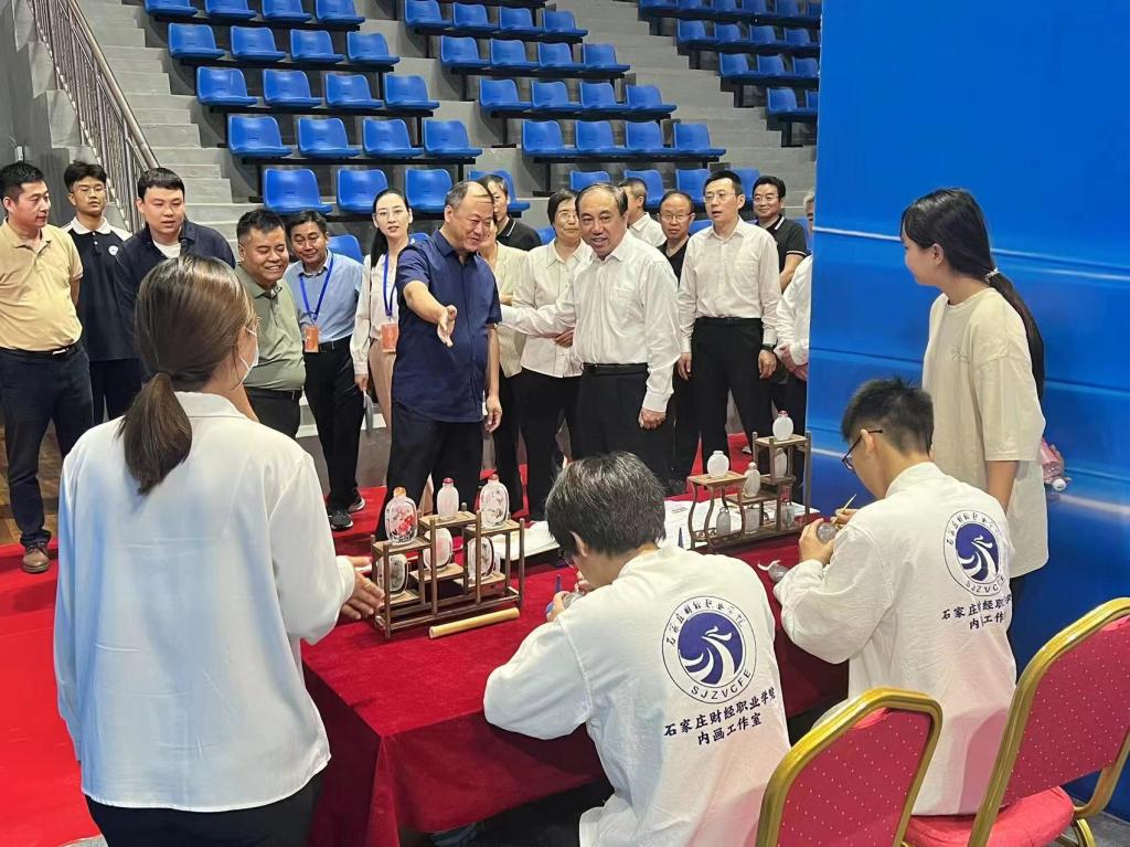 省政府领导到KY开元展区参观指导工作,观看KY开元非遗传承项目--衡水内画,学生亲手制作的文化传承展品,对KY开元“非遗进校园”工作给与了充分肯定。