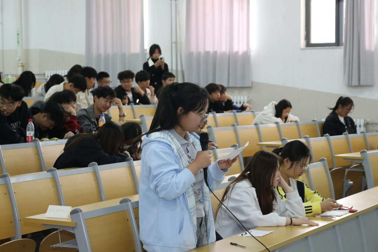 比赛中,同学们踊跃举手抢答,争分夺秒完成词汇拼写、写作朗诵等任务,现场气氛热烈。致弦吉他社同学助力添彩,让活动更加精彩。台下观众也暗自较劲,从口型便能看出大家的单词功底;互动环节,答题的同学用英语对答如流,笑容洋溢尽显对单词的热爱。
