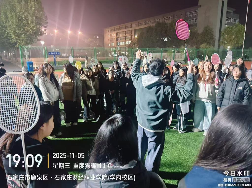 活动筹备阶段,杨佳奇老师便多次向学生科普体重管理的重要意义:“合理控制体重不仅是外在形象的管理,更是对身体健康的负责。当下不少同学因作息不规律、缺乏运动导致体重失衡,而羽毛球作为全身性运动,能有效燃烧卡路里、增强体质,是践行体重管理的优质选择。”为让活动更具针对性,杨老师还提前调研了同学们的运动基础,制定了“入门教学+分组对抗+趣味挑战”的活动方案,确保不同水平的同学都能参与其中、有所收获。