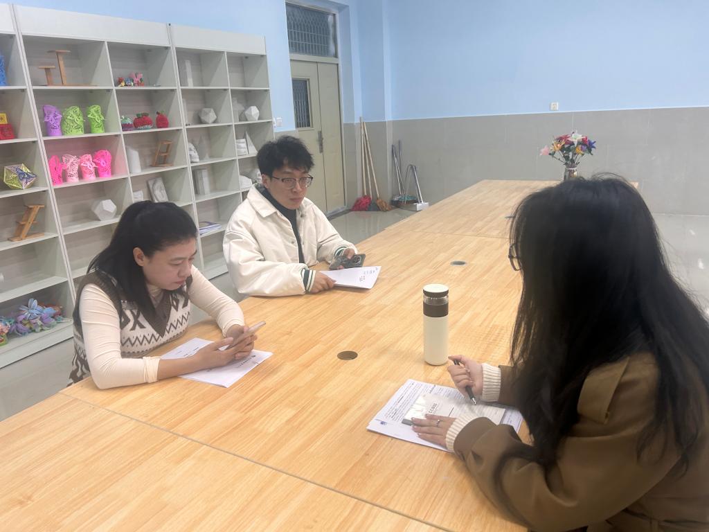 在随后的教学案例分享环节,三位教师展示了富有思政内涵的教学设计。张老师以“中国民间剪纸”为例,将非遗保护意识与工匠精神融入技法教学;郝老师通过“废旧材料再造”课程,引导学生树立环保观念和可持续发展理念;尹老师在“儿童绘本创作”教学中,鼓励学生关注社会公益,传递正能量。