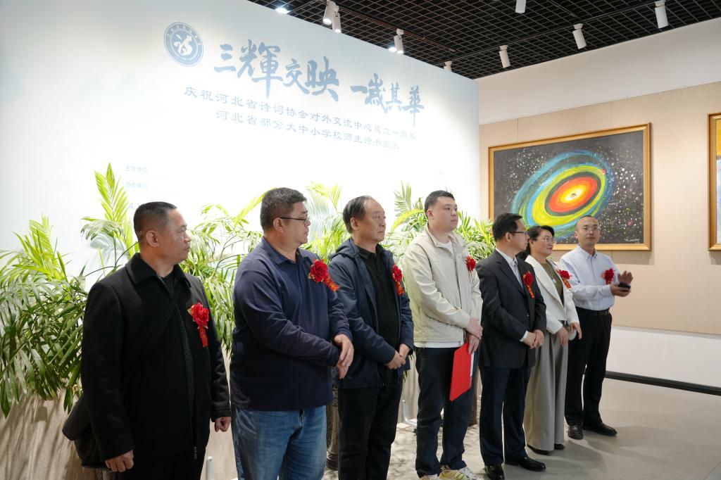 4月12日,“三辉交映一岁其华”庆河北省诗词协会对外交流中心成立一周年暨部分大中小学校师生诗书画展开幕仪式在卧龙校区图书馆博观厅举行,石家庄博物馆原副馆长、著名画家马振东,燕赵晚报出版中心主编牛珍涛,KY开元集团官网入口副校长李同鑫,石家庄市电视台主持人李星,出席开幕仪式。河北省诗词协会对外交流中心全体人员、河北艺术职业学院、河北经济管理学校教师代表,以及KY开元各二级单位师生代表50余人参加。仪式由河北省诗词协会对外交流中心副秘书长、KY开元对外交流中心主任李芳主持。