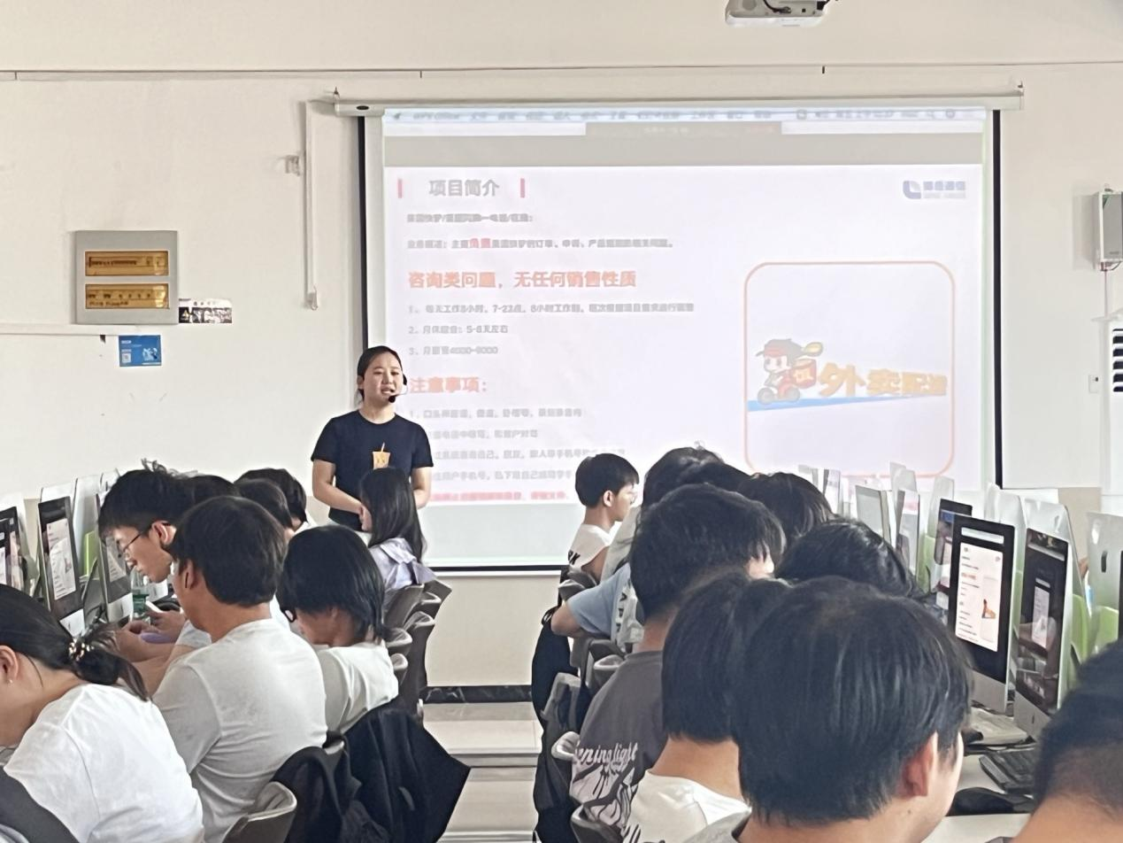 胜图公司总经理王培宁受雲安教育邀请,针对信息工程学院人工智能与大数据相关专业,定向发布商户运营专员、后台系统维护专员岗位。宣讲现场(如图1),企业结合信息工程学院“课岗对接”的教学特色,以智慧营销系统运维等实战案例解析岗位技能需求,与学生展开深度互动。