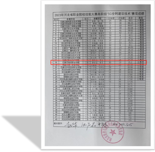 3月25日由河北省教育厅主办,河北省软件与服务外包职业教育集团及石家庄邮电职业技术学院共同承办的2023 年河北省职业院校学生技能大赛5G 全网建设技术(高职组)赛项在石家庄邮电职业技术学院圆满落幕。