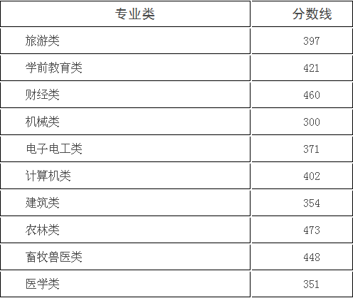 (二)面向中职毕业生各专业类录取控制分数线